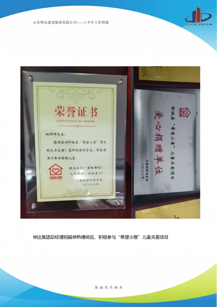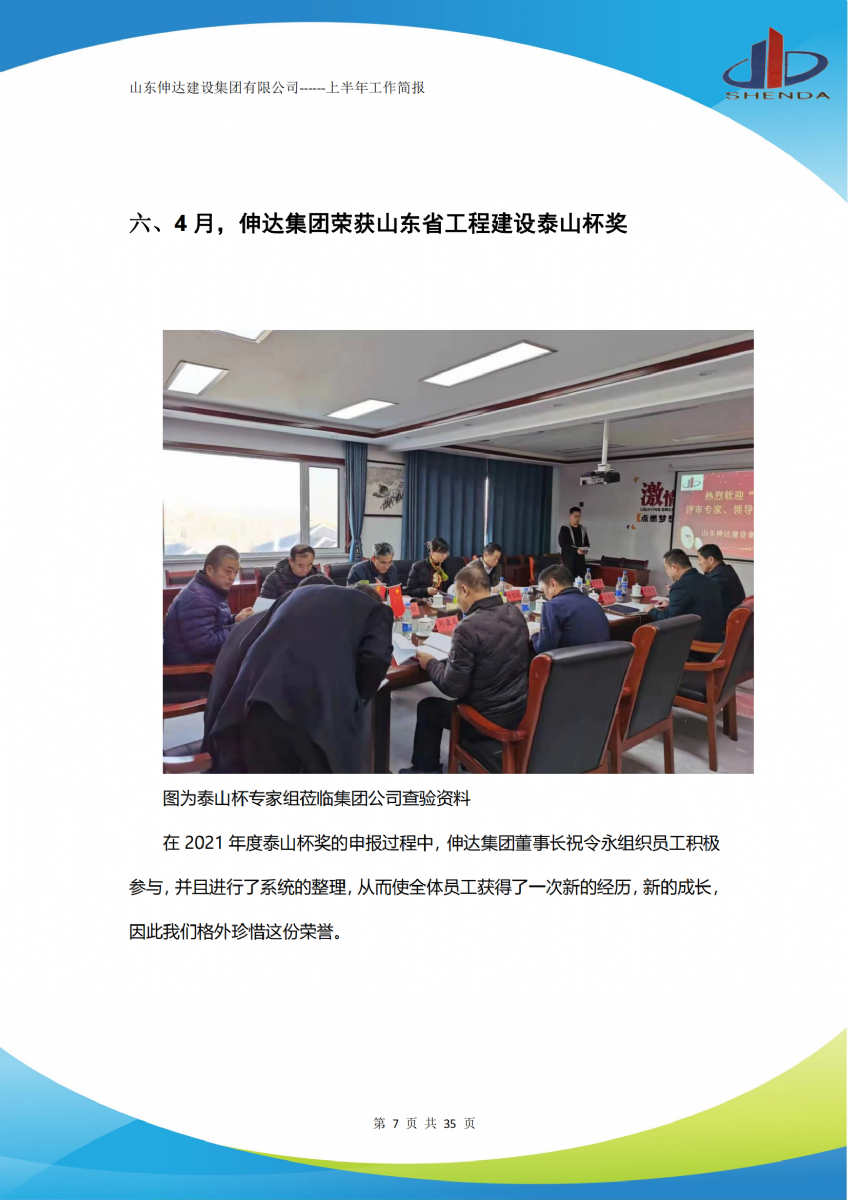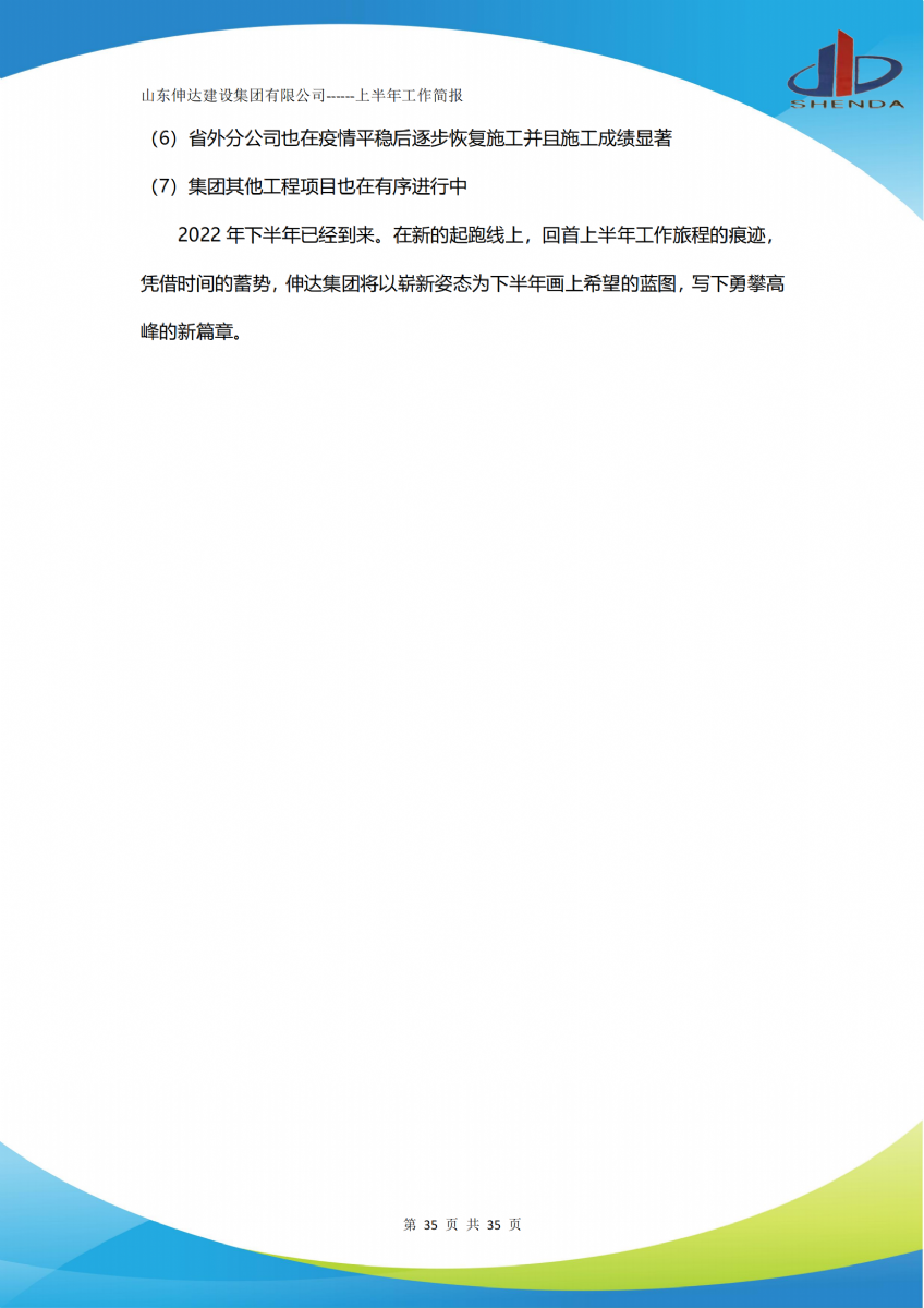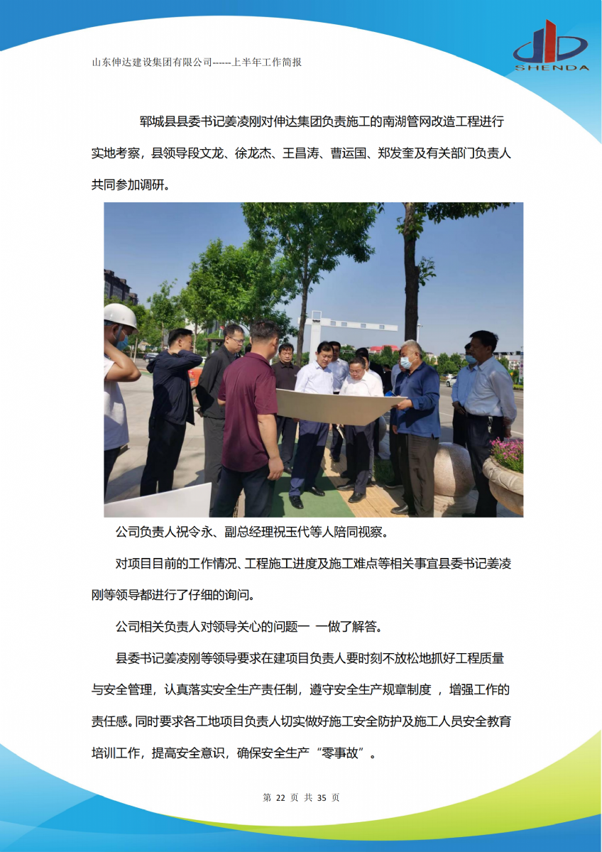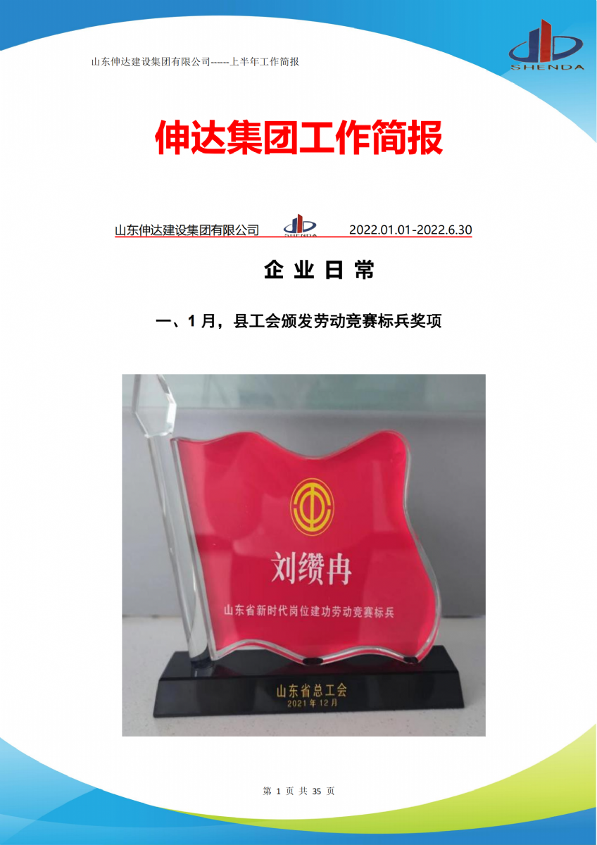 山東伸達(dá)建設(shè)集團(tuán)有限公司------上半年工作簡報 2022-8-11 本文被閱讀 1577 次